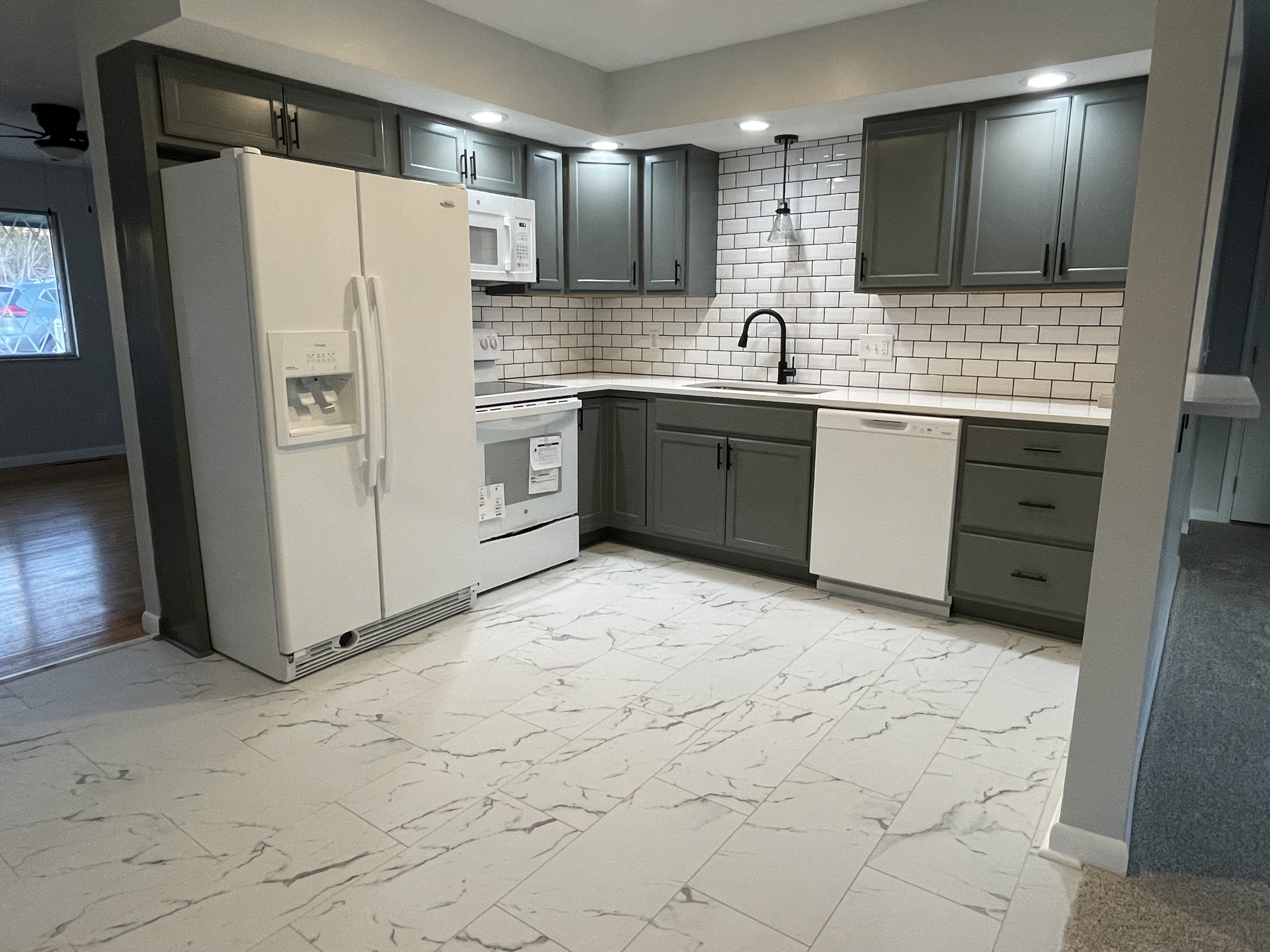 This kitchen was renovated as part of a whole home renovation. This install includes new appliances, flooring, cabinetry, and more!